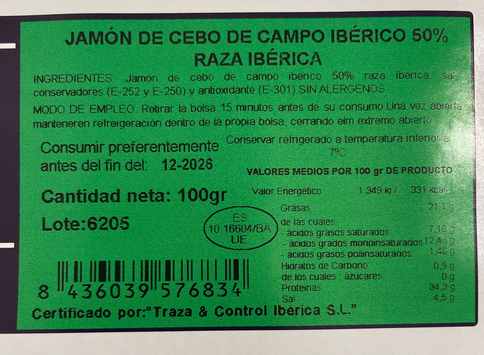 JAMÓN CEBO CAMPO 50% RAZA IBÉRICA