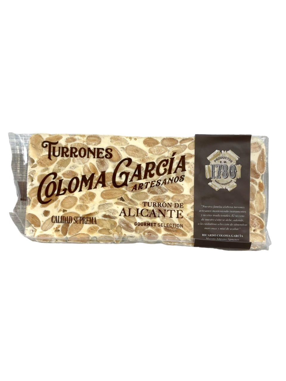 El mejor Turrón de Alicante Rilsan Gourmet. Elaborado artesanalmente a partir de almendras enteras y miel se obtiene un producto de sabor exquisito y rico en vitaminas.